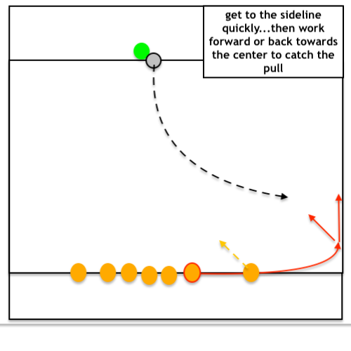 Catching pulls this way takes proactive-ness — as many good things in ultimate do — but it's worth it to avoid being trapped on the sideline.