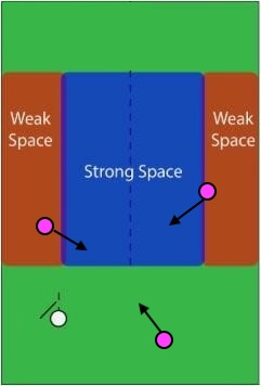 The basic idea is this: The offense would like to have open passing lanes to move the disc (let’s focus on frisbee for the moment) down the field. On defense, we’d like to deny the offense those passing lanes. Often we have a chance to do that if we sag a few steps away from our person. But this isn’t zone defense—we don’t want to leave our person too open.