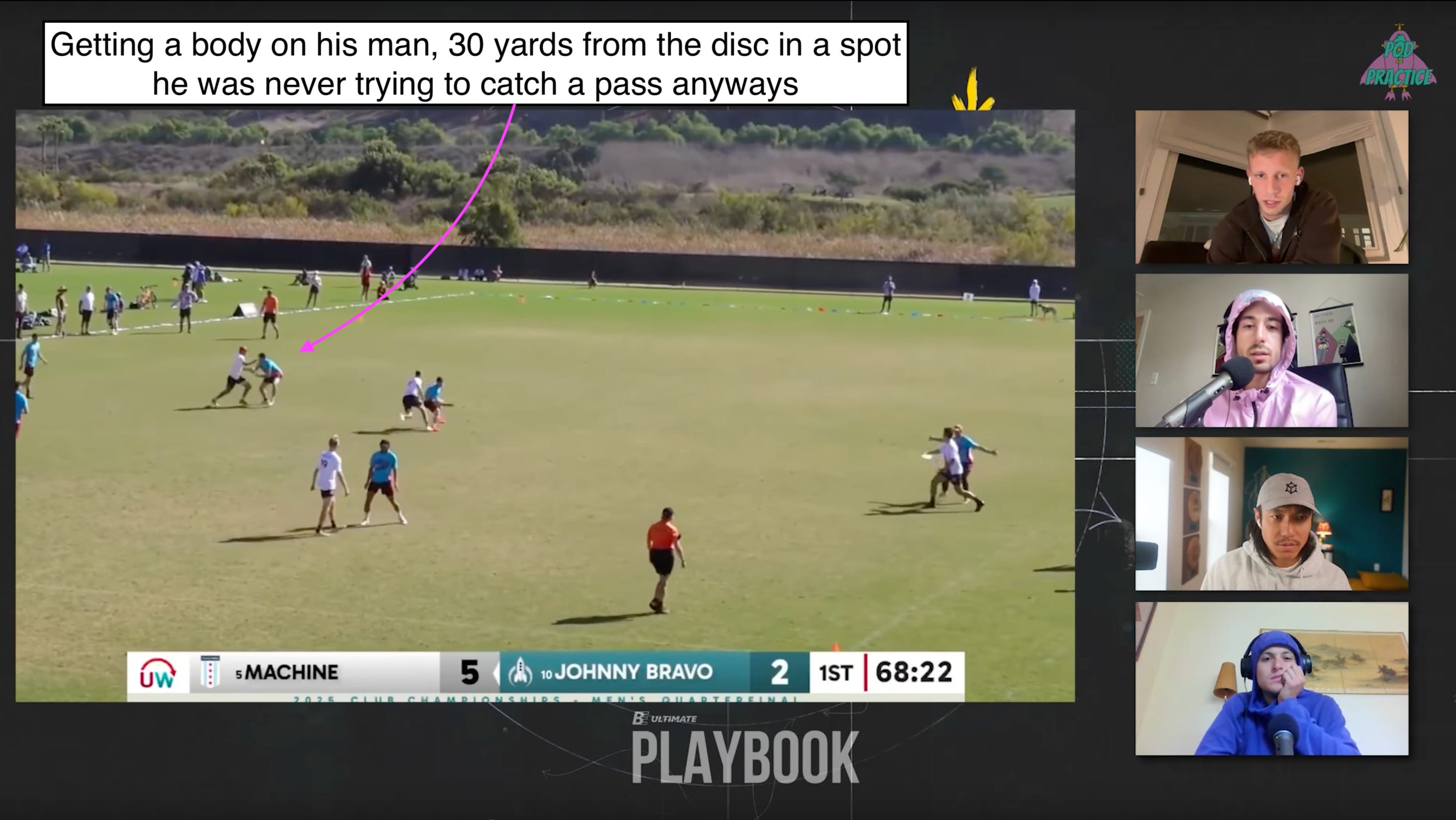 Here’s another good example of bad defensive positioning, from a Pod Practice episode: